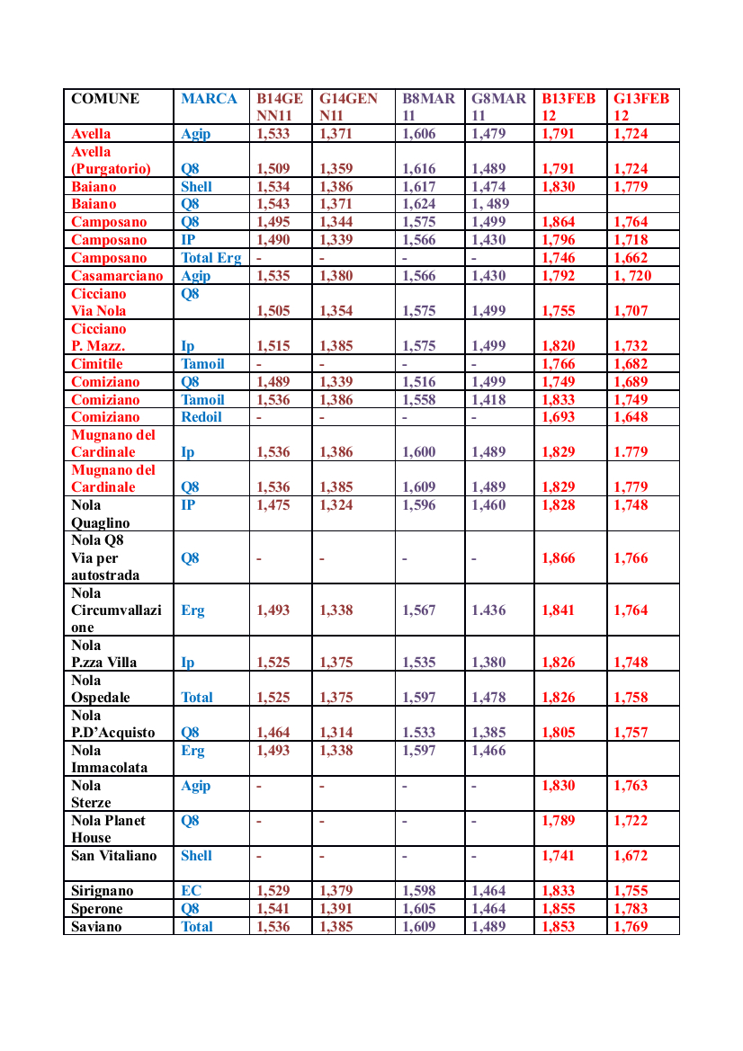 La minaccia si chiama “Sciopero”. Questa volta dei benzinai. E così, dopo il blocco degli autotrasportatori, l’aumento delle accise della manovra “Salva Italia” del governo Monti, la crisi di Petrolplus che ha portato alla riduzione dell’offerta da parte delle cinque raffinerie svizzere e adesso l’emergenza gelo e neve con una domanda spropositata del gasolio per il riscaldamento nelle abitazioni, ci si trova ad affrontare ancora un periodo duro. Anche nel Nolano i prezzi del carburante sono saliti soprattutto se comparati agli stessi dell’anno scorso, toccando la massima alla Q8 sulla variante all’uscita dell’autostrada di Nola Gli aumenti riguardano anche il Gpl tra i 2 e i 3 centesimi. I rincari di benzina e gasolio rappresentano la “ennesima speculazione da maltempo a danno degli automobilisti che non trova certo giustificazione rispetto all’andamento del petrolio”. E’ ciò che scrive il Codacons in una nota. “Il nuovo record raggiunto dai carburanti in Italia – spiega il presidente Carlo Rienzi – determina una stangata pari a +204 euro ad automobilista su base annua, cifra destinata a crescere se i listini alla pompa dovessero proseguire la folle salita. Per questo chiediamo al governo di inviare la guardia di finanza presso i distributori di benzina di tutta Italia, al fine di accertare se vi siano stati rialzi dei listini ingiustificati e puramente speculativi“.
