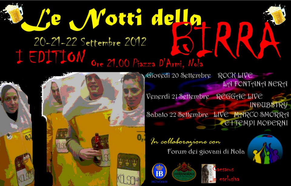 accompagnato da prelibatezze gastronomiche e soprattutto da carne selezionata. Ingrediente finale tanta buona musica: tre gruppi appartenenti a tre differenti generi musicali, il rock dei Fontana Nera, il reggae degli Indubstry e la creatività, il genio e l’improvvisazione di Marco Smorra ed i Tempi Moderni con le loro ballate popolari. Le infinite tavolate per tre giorni riempiranno Piazza D’Armi a Nola e l’odore della birra saturerà l’aria.