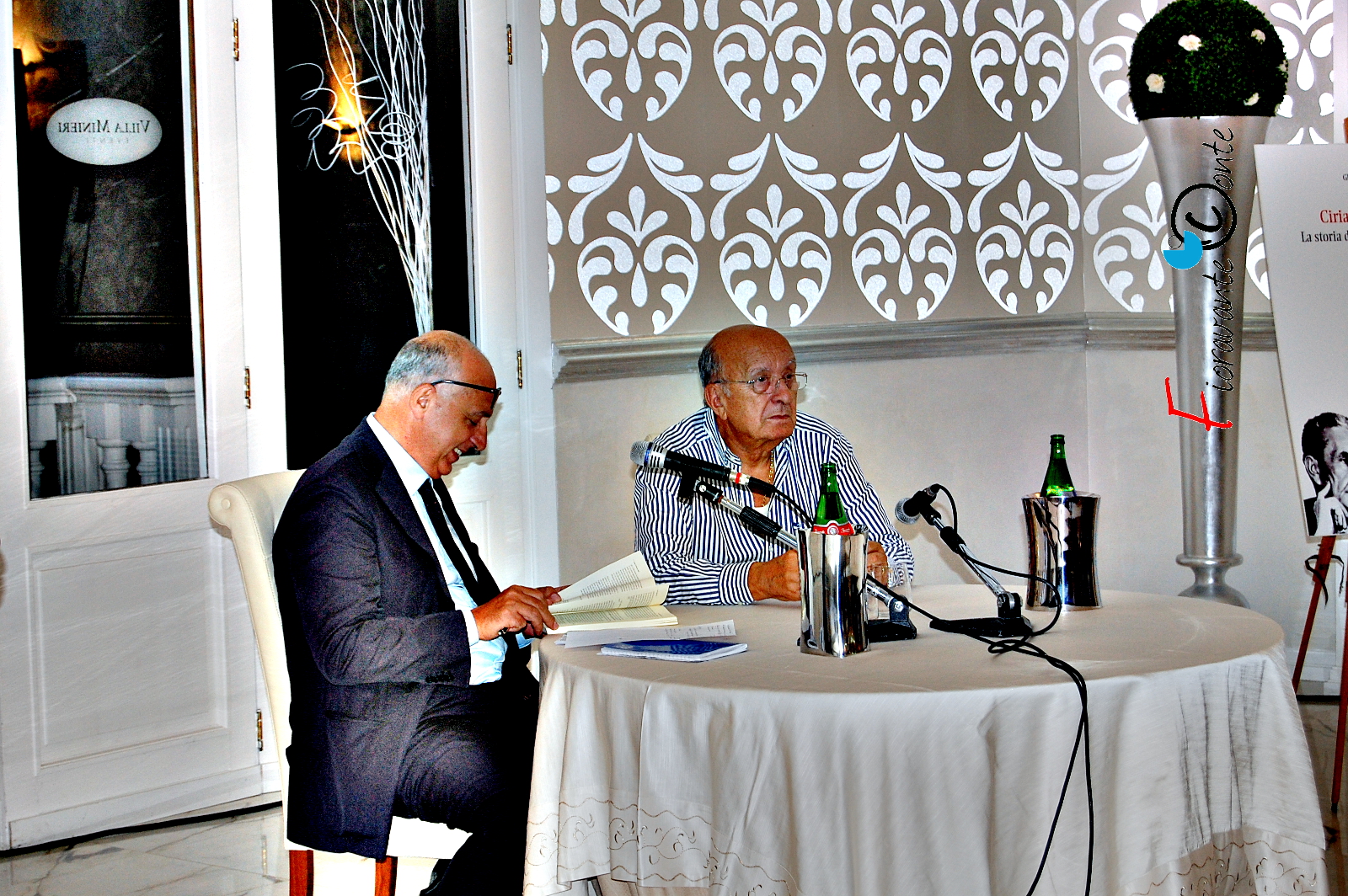 L’occasione? La presentazione del libro “La Storia d’Italia non è finita” del “padrino della DC”, Ciriaco de Mita, un lucido (“l’esercizio della memoria è indispensabile” dice in un passaggio il politico) ed arzillo ottantaquattrenne senza cravatta, in camicia bianca a righe blu che, effettivamente, ha vissuto e vive da protagonista la Storia di una Nazione, oggi ahimè, “tremendamente sospesa”. Geremia Biancardi, Pietro Foglia, Pellegrino Gambardella: ecco alcuni dei nomi presenti a Villa Minieri per l’evento. In particolare il sindaco di Visciano che ha fortemente voluto questo evento e che introducendolo, ha lamentato il mancato concretizzarsi dell’evento nella struttura dell’Eremo dei Camaldoli a Visciano.